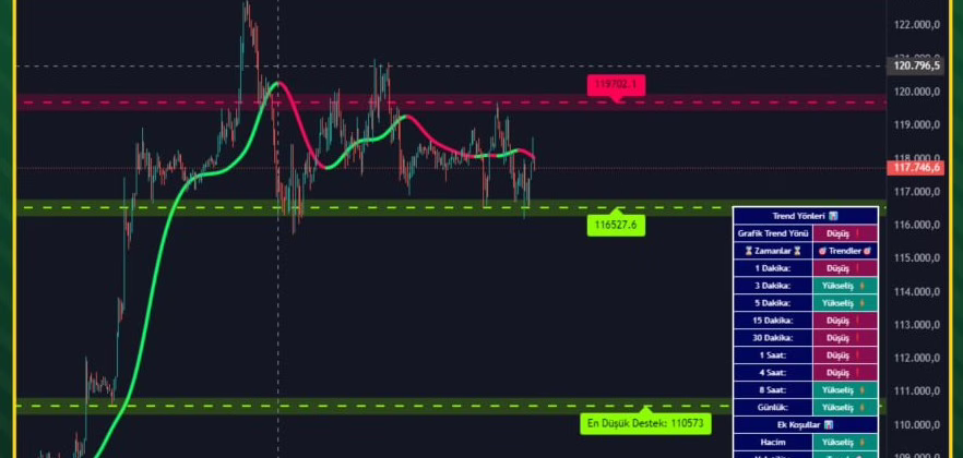 BTC/USD paritesinde teknik görünüm, 116527 seviyesi üzerinde tutunma çabalarının sürdüğünü gösteriyor. Kısa vadeli zaman dilimlerinde (3-5 dakikalık grafiklerde) yukarı yönlü bir toparlanma sinyali gelse de, genel grafik trend yönü ve daha uzun vadeli göstergeler düşüş eğilimini işaret ediyor. Bu da fiyatın hala baskı altında olduğunu ancak tepki yükselişlerinin görüldüğünü gösteriyor. Yatay hareketin sıklaştığı bu bölgede, […]